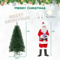 Costway 6/7/8 FT Christmas Tree With 568 PVC Branch Tips 200 Warm White LED Lights Gloves