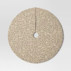 Add a touch of shimmer to your holiday decor with this Christmas Sequined and Beaded Tree Skirt from Wondershop™. Made of polyester, this beige Christmas tree skirt features shiny sequins and beads that beautifully frame your Christmas tree. Easy to secure with the hook-and-loop closure, this circular tree skirt provides a perfect base for presents and helps keep pine needles off the floor.