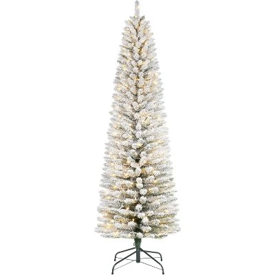 - Product Name: Acekool Snow Flocked Pencil Tree, PVC Mixed Flocked Needles, Hinged Slim Fir, Sturdy Base, Space Saving Corner Style
