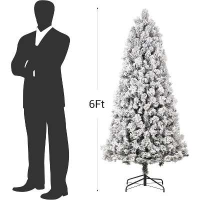 Artificial Christmas Tree With White Lights & Foldabe Metal Stand, Flocked Christmas Pine Trees For Home, Holiday Decoration