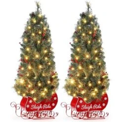 - 🎄Stable Base: The red sled base is durable and easy to stand, providing good support for the mini christmas tree and effectively maintaining the balance of it.Moreover, it is designed with a timer.Once enabled, the Christmas tree will automatically light up for 6 hours and then turn off for 18 hours.