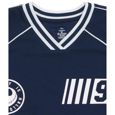 Get ready to score a goal with this Disney Nightmare Before Christmas Mesh Soccer Jersey Athletic V-neck T-Shirt for adults. Featuring a bold and eye-catching design of Jack Skellington from the beloved movie, this jersey is perfect for any fan. Made with a comfortable and breathable mesh material, it’s perfect for staying cool and comfortable while playing your favorite sport. The v-neck style adds a touch of athletic flair, making it a great choice for both on and off the field. Show off your love for Nightmare Before Christmas and your athletic skills with this must-have jersey.