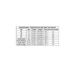 - Size and Fit – This garment fits true to size. Ages 6-14. Please use the size chart image for accurate sizing.
