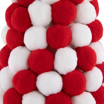 This charming tabletop tree features fluffy white and red pom poms all arranged on a sturdy base for easy placement. Perfect for adding a touch of whimsy to your holiday decor, this tree is sure to delight family and friends alike. Whether you’re hosting a holiday dinner or simply looking to spruce up your home for the season, this delightful decoration is sure to bring joy to all who see it.Product Features:UnlitFeatures red and white pom pom ballsCombine this tree with other holiday pieces for a festive table centerpiece or as part of a holiday display Recommended for indoor use only Dimensions: 13″ high x 5.5″ diameter (at the widest point)Material(s): polyester/foam