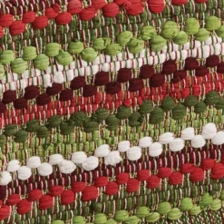 Elevate your table arrangement with our Wintergreen chindi table runner. Its beautifully woven green, red, and white hues make it the perfect accessory for your holiday table. This charming table runner will add texture and serve as the ideal statement piece. It will subtly transform any environment for the holiday season and can remain versatile throughout the year.