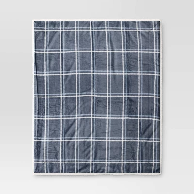 Keep your living space cozy with this Printed Plush Throw with Faux Shearling Reverse from Threshold™. Made from 100% recycled polyester knitted fabric and featuring a faux-shearling reverse, this plush throw blanket offers plush comfort. Featuring a grid print for a modern look that blends with various decor styles, you can drape it over the back of your sofa or armchair to snuggle up in comfort.