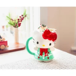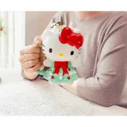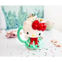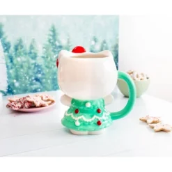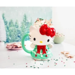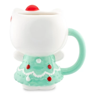 - TRENDY DRINKWARE: Fun Sanrio 3D sculpted mug shaped like Hello Kitty wearing a pretty Christmas Tree dress!