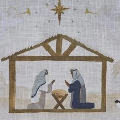 Bring the spirit of Christmas to your table with this festive dinner mat. Featuring a beautifully detailed nativity scene against a neutral background surrounded by golden star accents, this Christmas dinner mat adds a touch of seasonal warmth and festive elegance to any holiday table decor. Durably made of 100% premium cotton material that offers a festive table centerpiece backdrop to enhance both casual and formal meal settings year after year. The machine washable element makes after meal cleanup quick and easy, providing the perfect decorative tabletop addition to utilize during holiday gatherings and Christmas dinner parties.