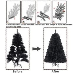 - Flexible tips: The “leaves” on our tree can be bent and set at will. After putting the tree body and the stand together, you are supposed to fluff out the tips to give a full look at your special Christmas tree. All tips are bendable and can be set in a certain direction, normally the fluffing out procedure including two steps: lifting the top tips and pulling out the side tips.